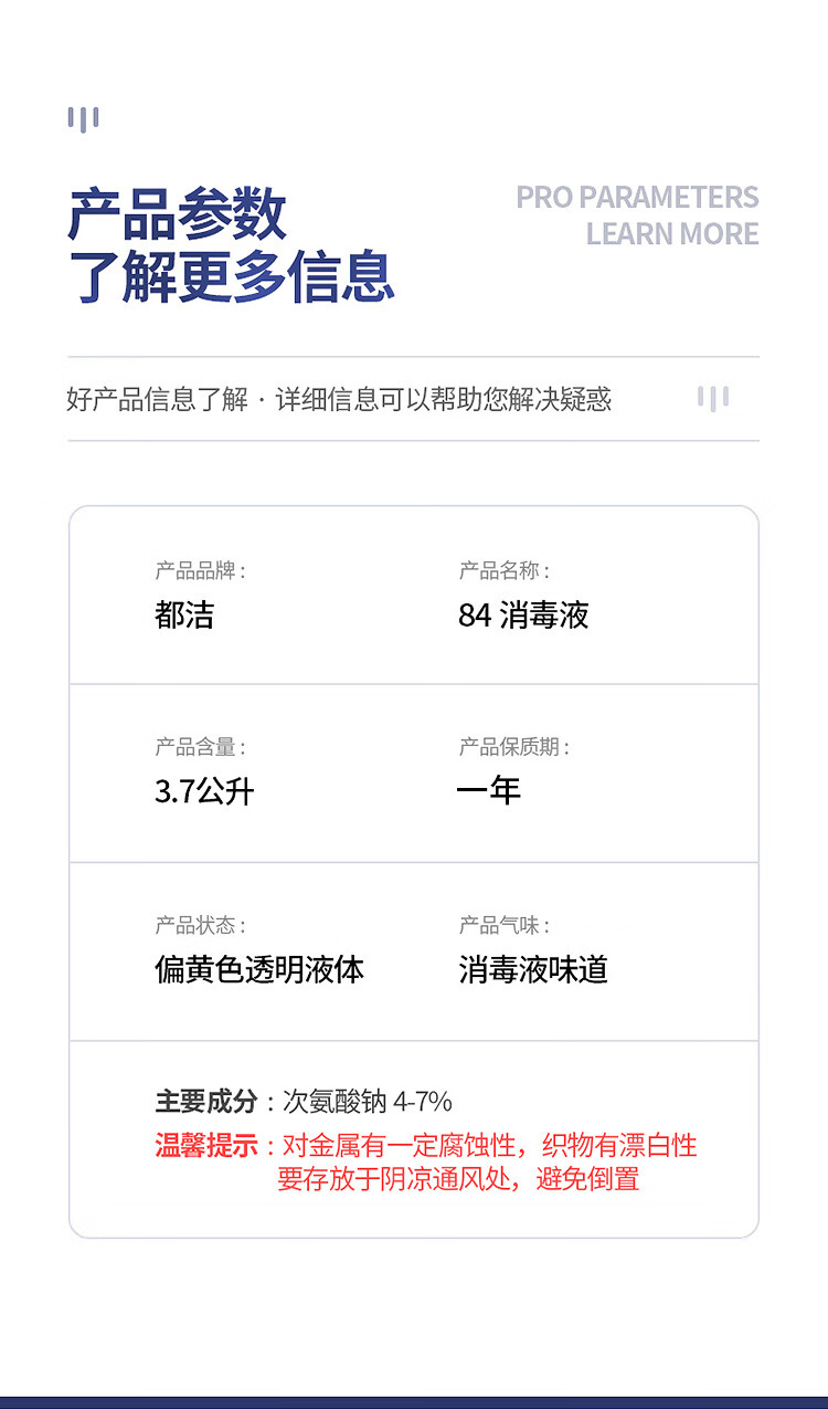 都洁84消毒液3.7kg 单桶装