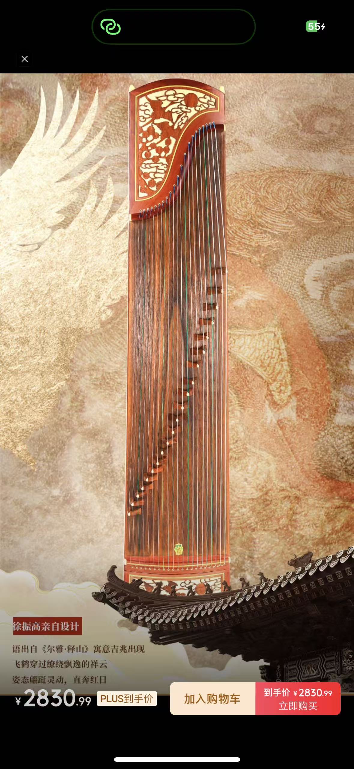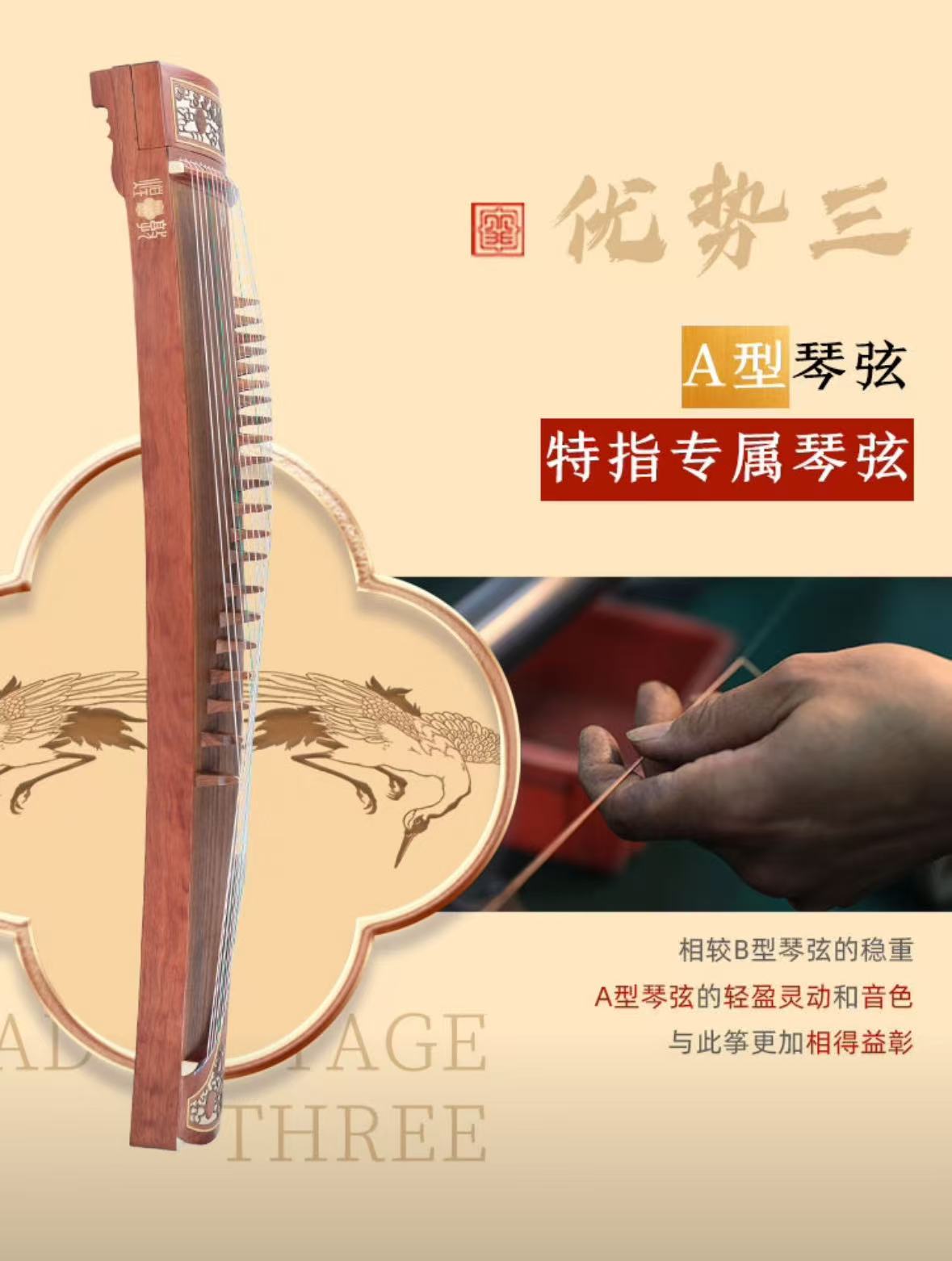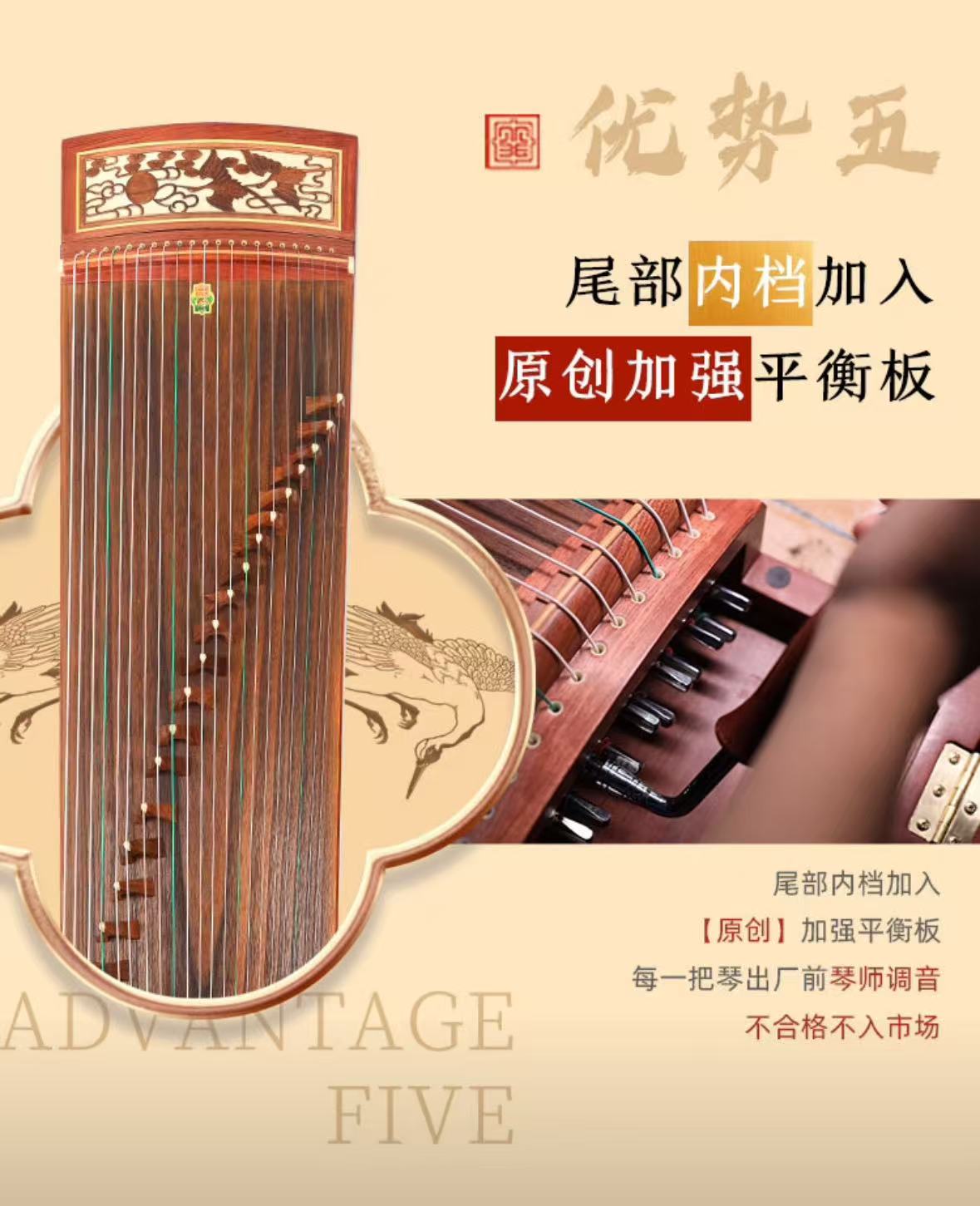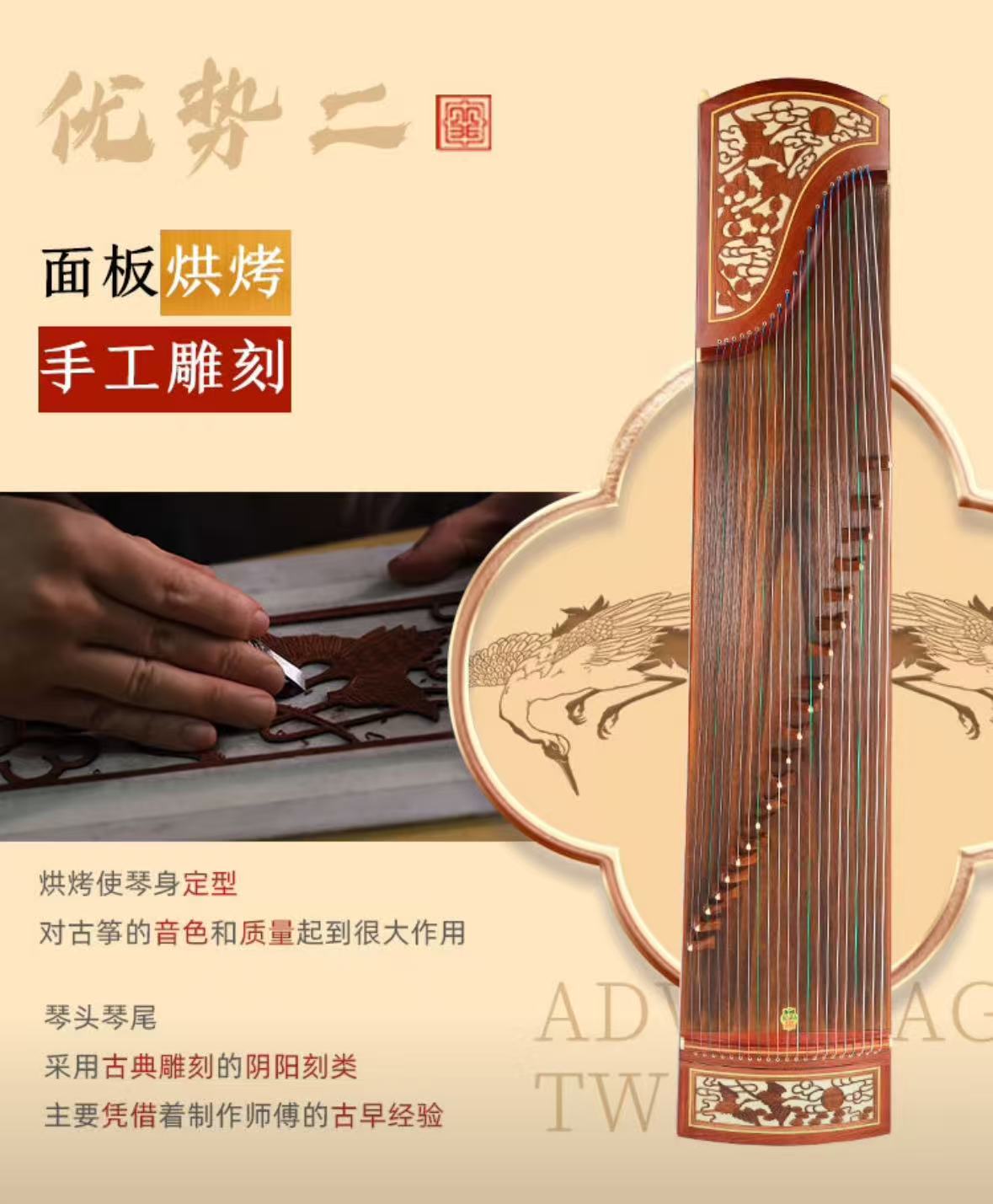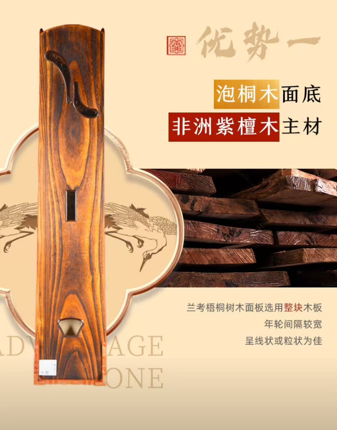 敦煌牌 考级演奏入门级古筝民族乐器一厂 檀木古筝 双鹤朝阳 696D